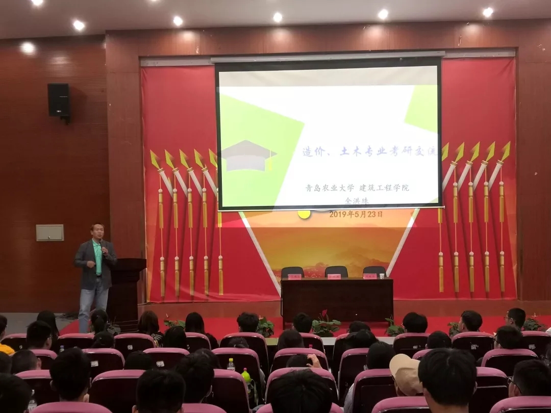 2019年5月24日下午2点,我院工学院邀请青岛农业大学全洪珠教授,在我院做考研专题讲座。讲座由工学院教学院长司晓文教授主持,工学院全体本科生参加。