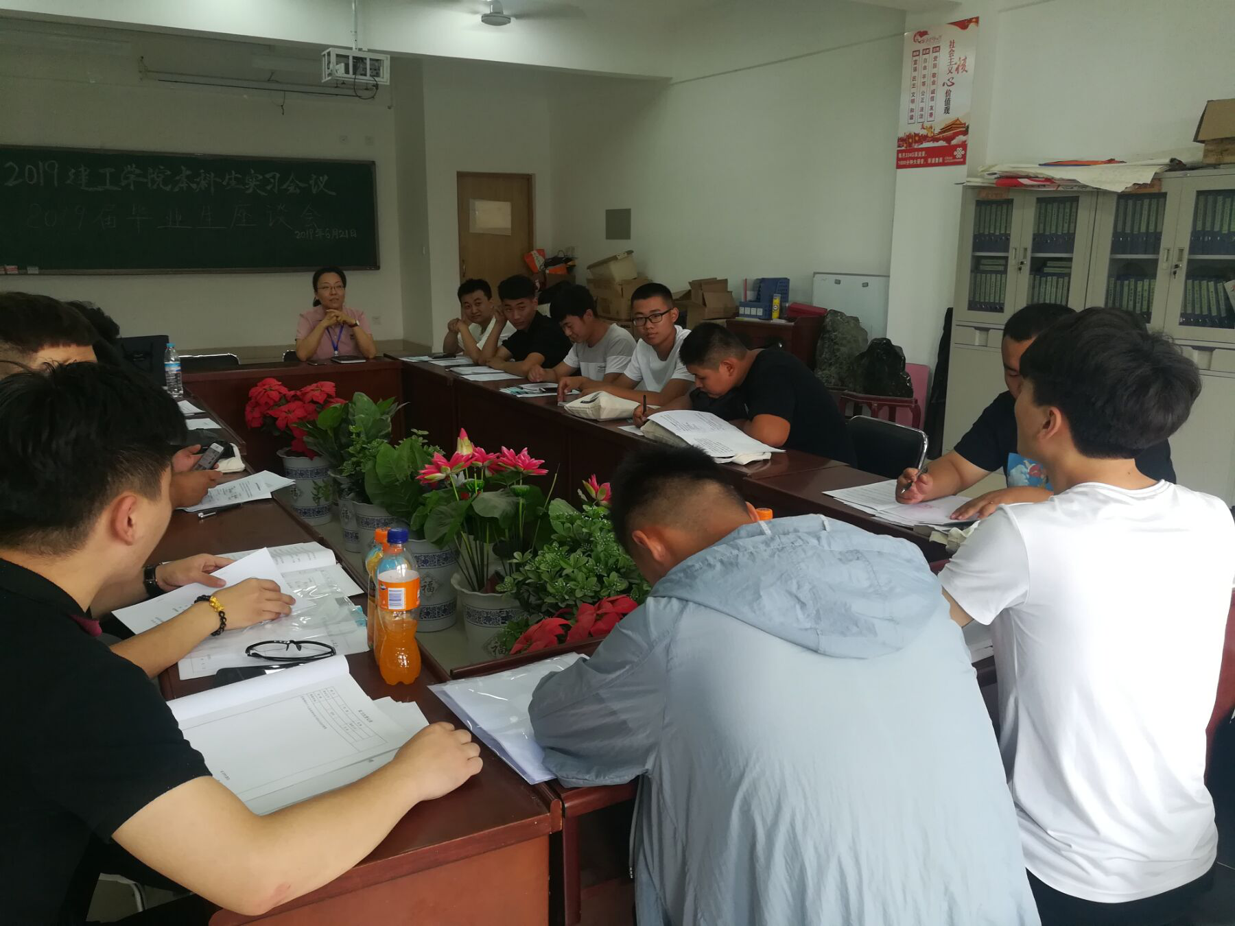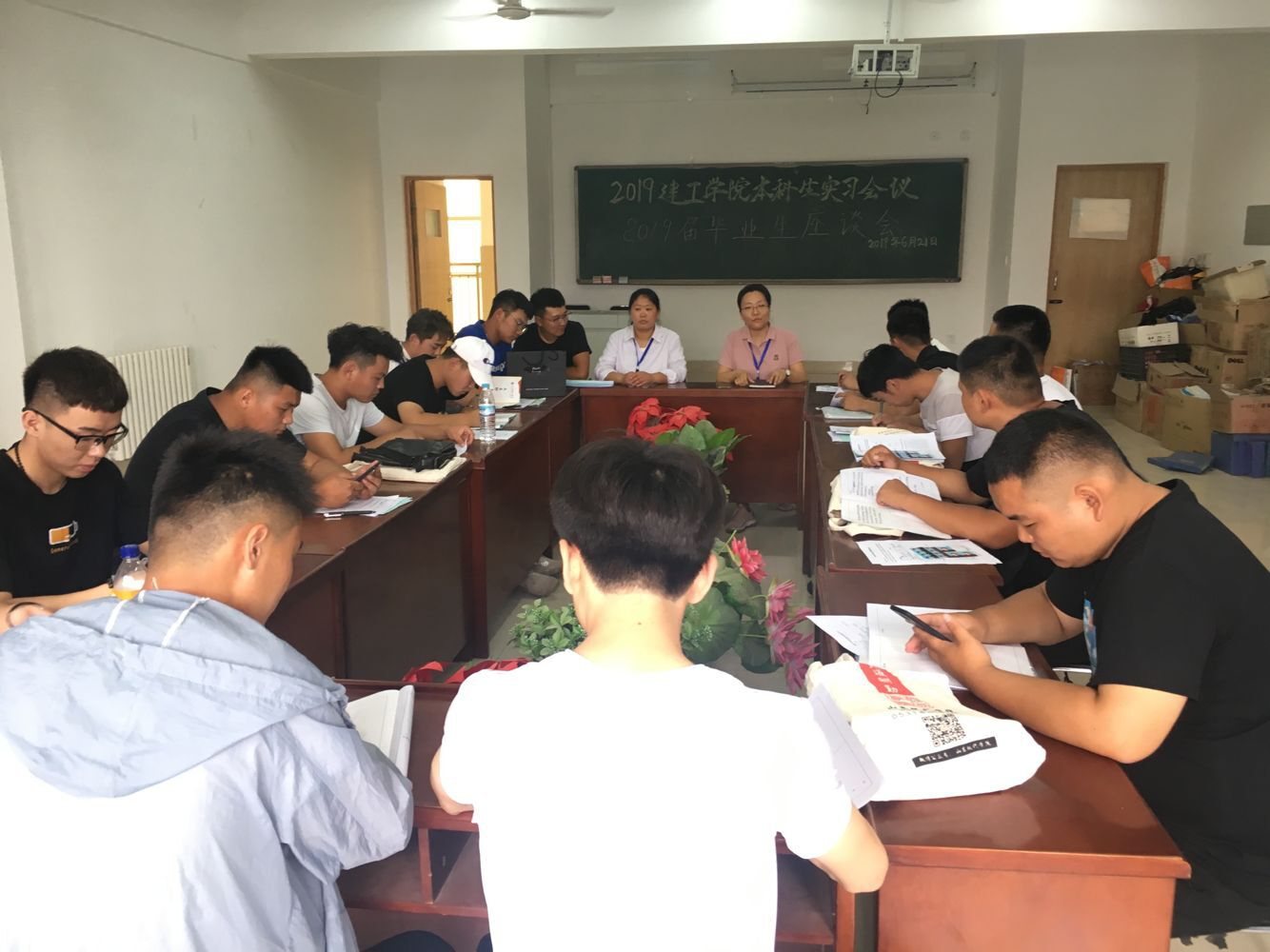 2019年7月7日上午,山东现代学院建筑工程学院在科研楼418室举行2019届毕业生座谈会。建筑工程学院教学主任白雪、教学秘书樊悦霞出席了座谈会。