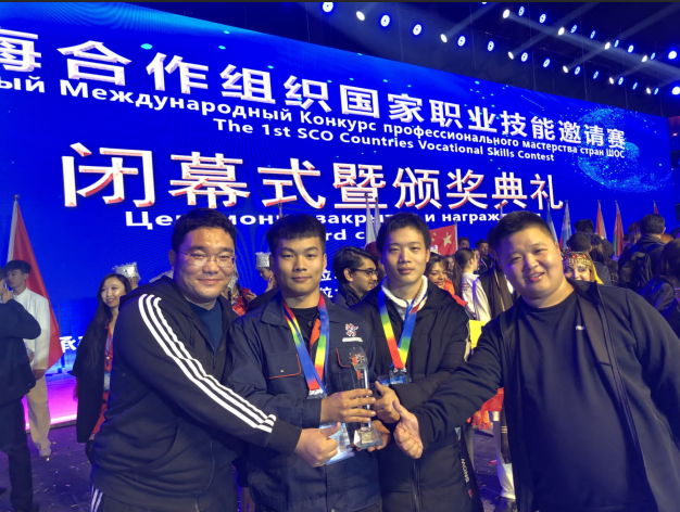 热烈祝贺我院工建筑汽车学院张金友、刘作峰老师带领17级汽服孙殿强和19级汽修刘云浩两名学生,参加上合国家职业技能大赛荣获全国二等奖,名列二等奖第一名,民办院校第一名,并代表学校参加国内组银奖颁奖仪式,取得了我校技能大赛历史性突破!