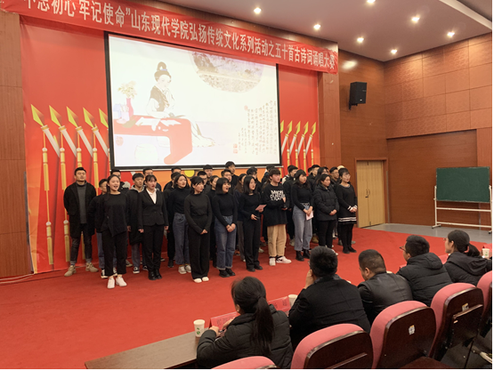翰墨飘香,诗韵悠扬。国学跨越时光,成就了山东现代人美好的品性。最后,庆祝此次弘扬传统文化之古诗词诵唱大赛获得圆满成功。