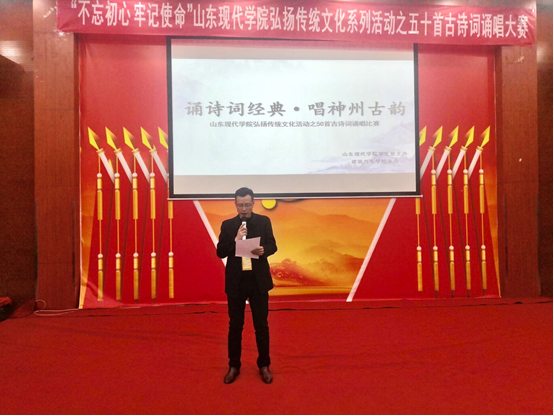 表演结束后,房昌盛院长对本次诵唱比赛做出总结,他希望:“通过此次比赛,进一步激发同学们读书的热情,使大家在诗歌朗诵中受到中华语言文化美的熏陶”。