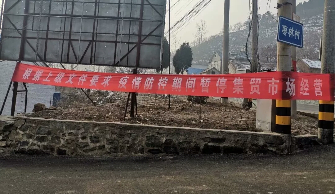 为避免人员聚集,暂时关停集贸场所。对大集地点悬挂宣传条幅,引导群众自觉响应号召,不外出摆摊经营,购物。