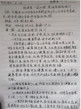 工汽车学院的纪艳玲老师,疫情发生以来,纪老师每天都在关注着疫情发展的态势,每次都是在第一时间,纪老师总能把最有用的疫情防控信息传递给同事和学生,这次返校规范培训特别节目开始之后,纪老师和同事在私下微信聊天的时候就说:“我们学习这次返校规范培训的知识,一定不能只是看一看、听一听而已,要带动学习拿起笔来,做好学习记录,这样节目结束以后,还可以拿出来笔记再进行学习,这才能真正确保开学返校准备工作万无一失。”感慨之余,纪老师写下了一篇学习的感悟,她希望能够带动同学们也跟她一起拿起笔来做好学习记录。