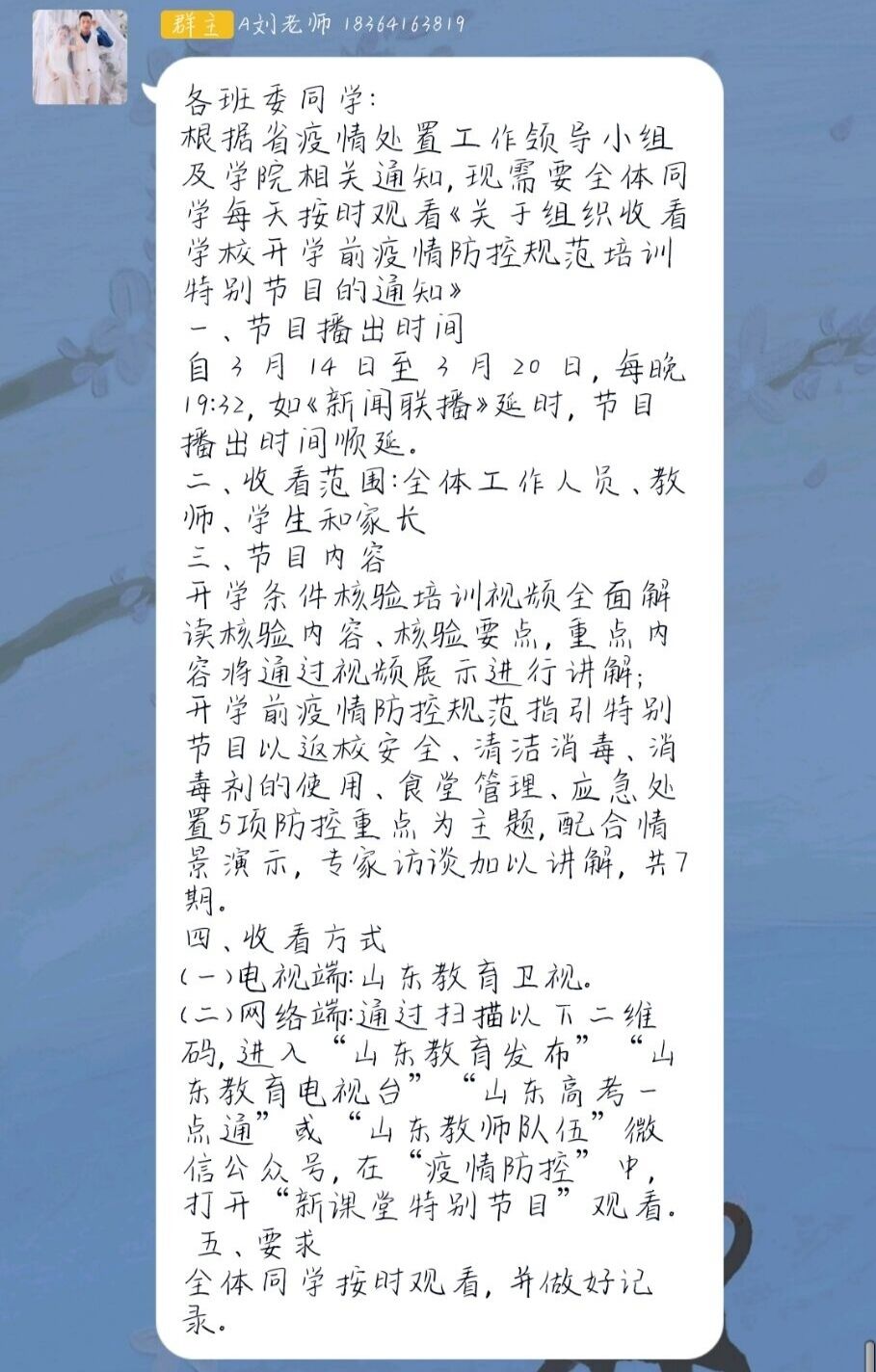 (图为刘鹏卫老师第一时间下发通知的截图)