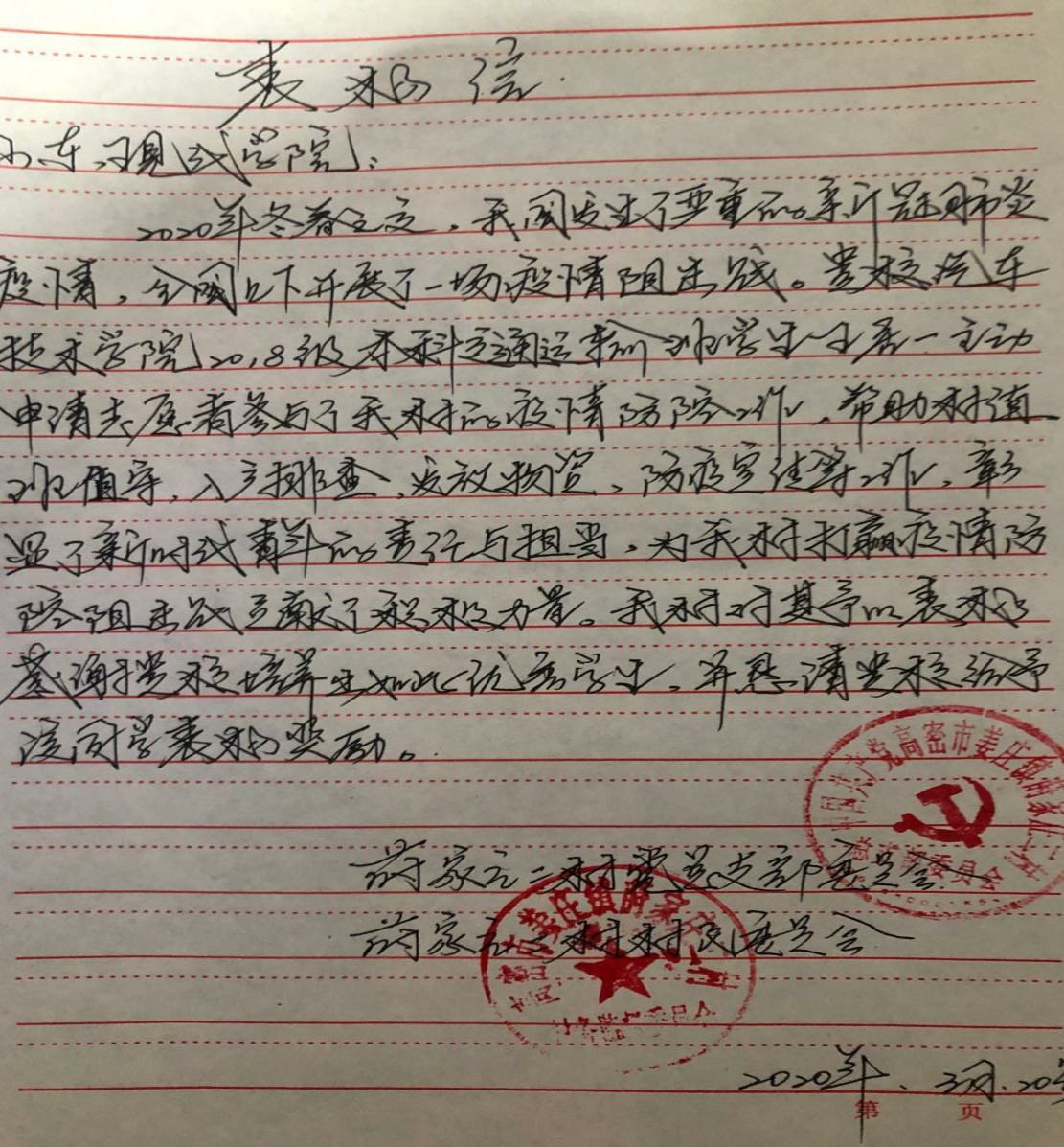 2020,是一个多么美好的年份,在人们还沉浸在2020年2月2日对称日的浪漫时,却传来武汉新型冠状病毒感染肺炎疫情的消息。安得广厦千万间,大庇天下寒士俱欢颜。从武汉到全国,疫情的信息时时刻刻拨动着我们的心弦。在这场没有硝烟的疫情阻击战中,我自愿参加了山东省高密市莳二村的防疫志愿者工作,尽自己所能为疫情防控贡献“青春力量”。