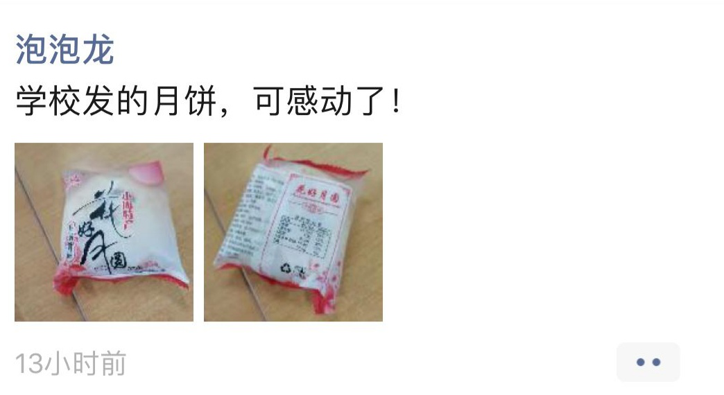 收到月饼后的同学们纷纷在朋友圈晒出了来自学校领导浓浓的爱意!