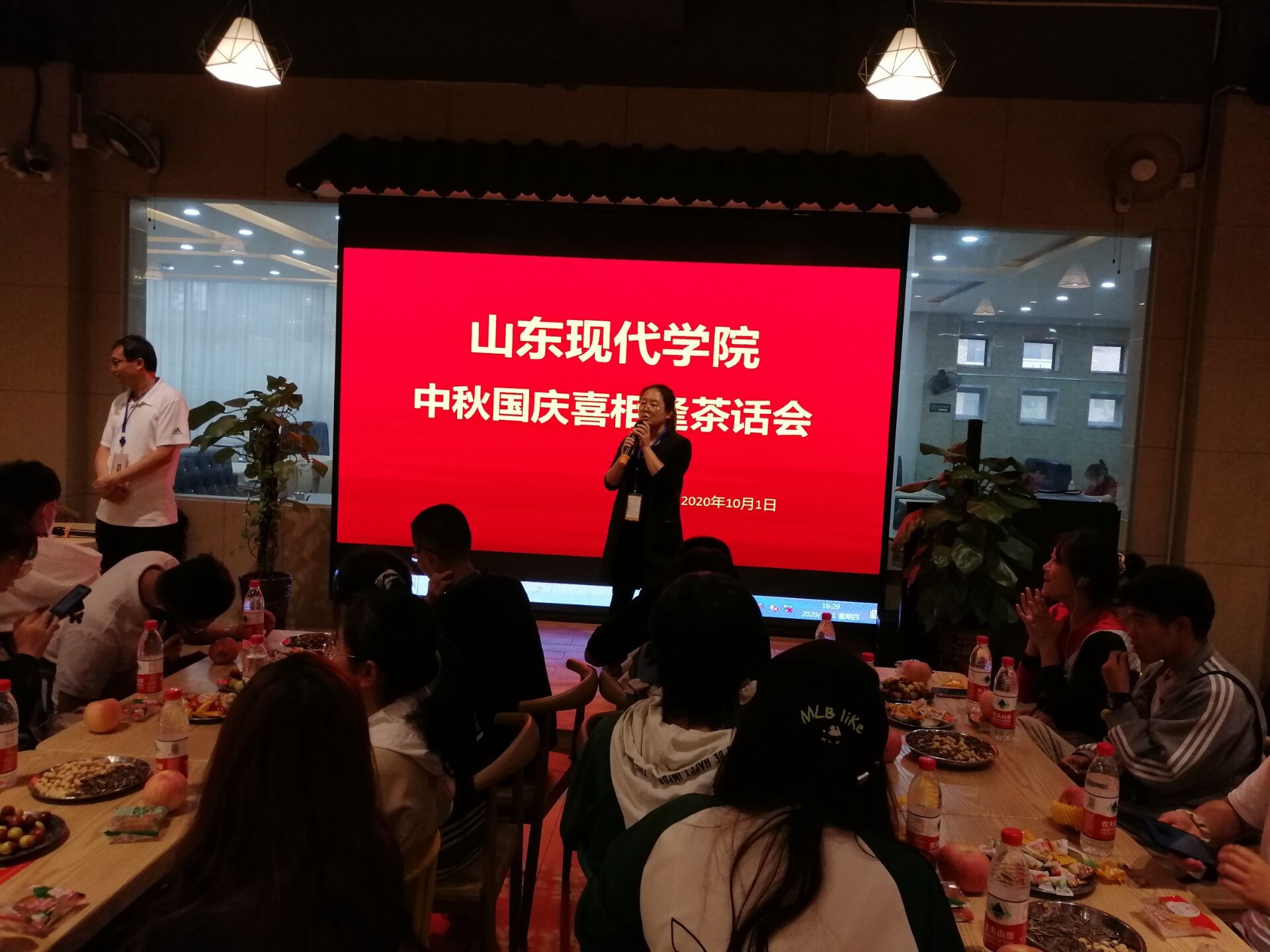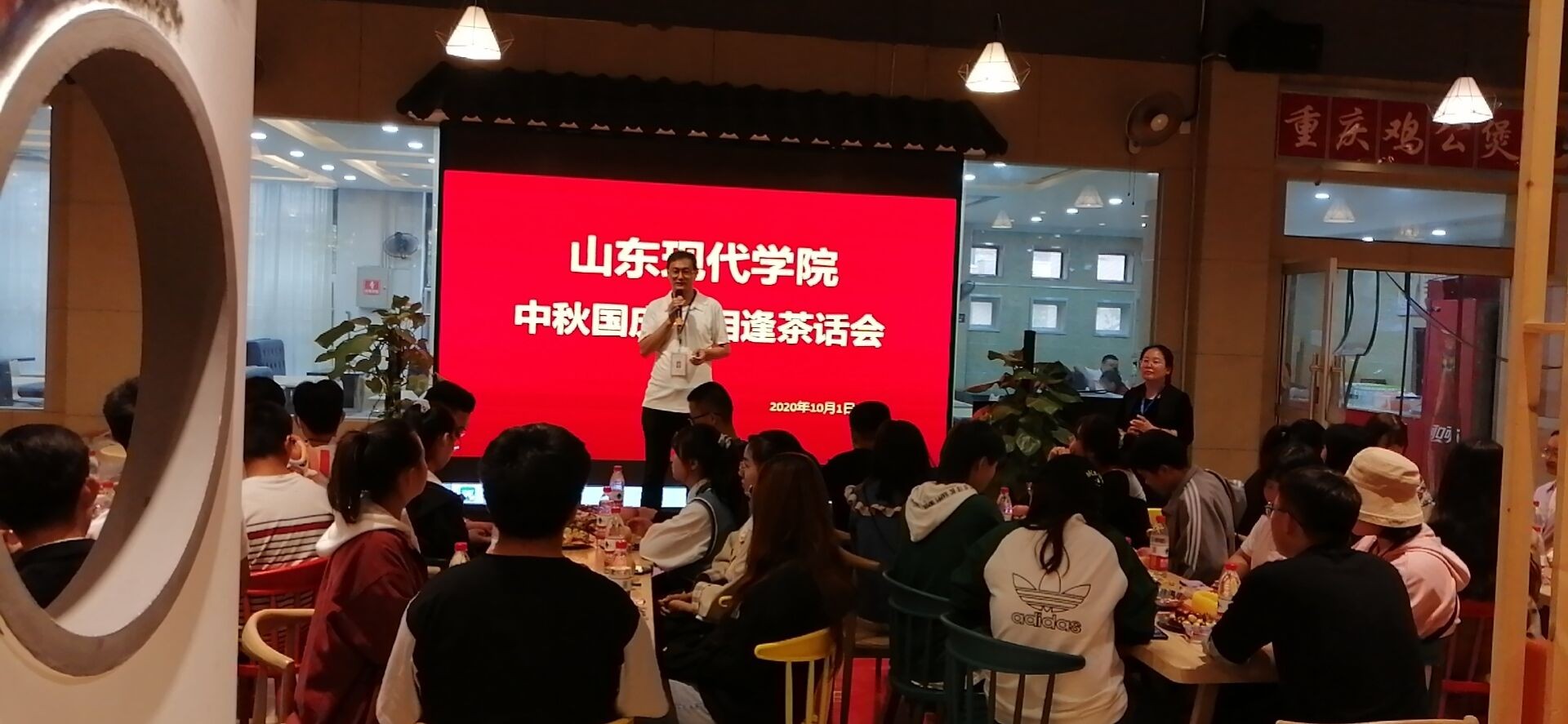 在这个特别的2020年,国与家撞了个满怀,万里无云镜九州,最团圆夜是中秋。为弘扬中国优秀传统文化,品读民族精神的深厚内涵,共建现代师生情,在刘春静董事长的部署下,我校于10月1日晚,在崇俭餐厅二楼开展了“中秋国庆喜相逢——山东现代学院茶话会”双节活动。
