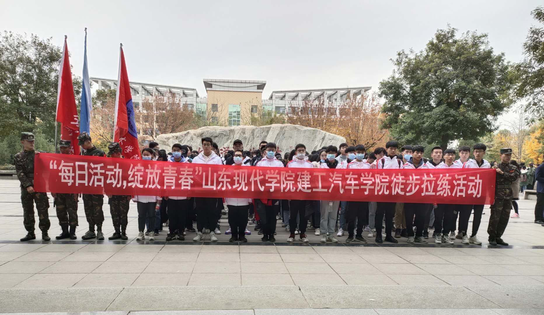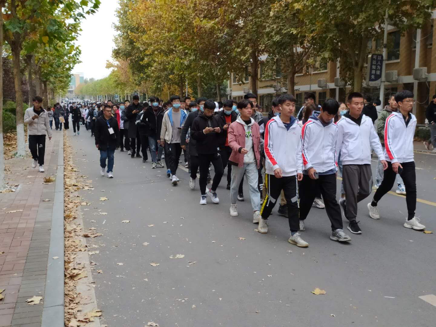 11月5日下午,工学院徒步拉练活动在科研楼前拉开帷幕,2020级新生在学院领导的精心组织下进行远足拉练。