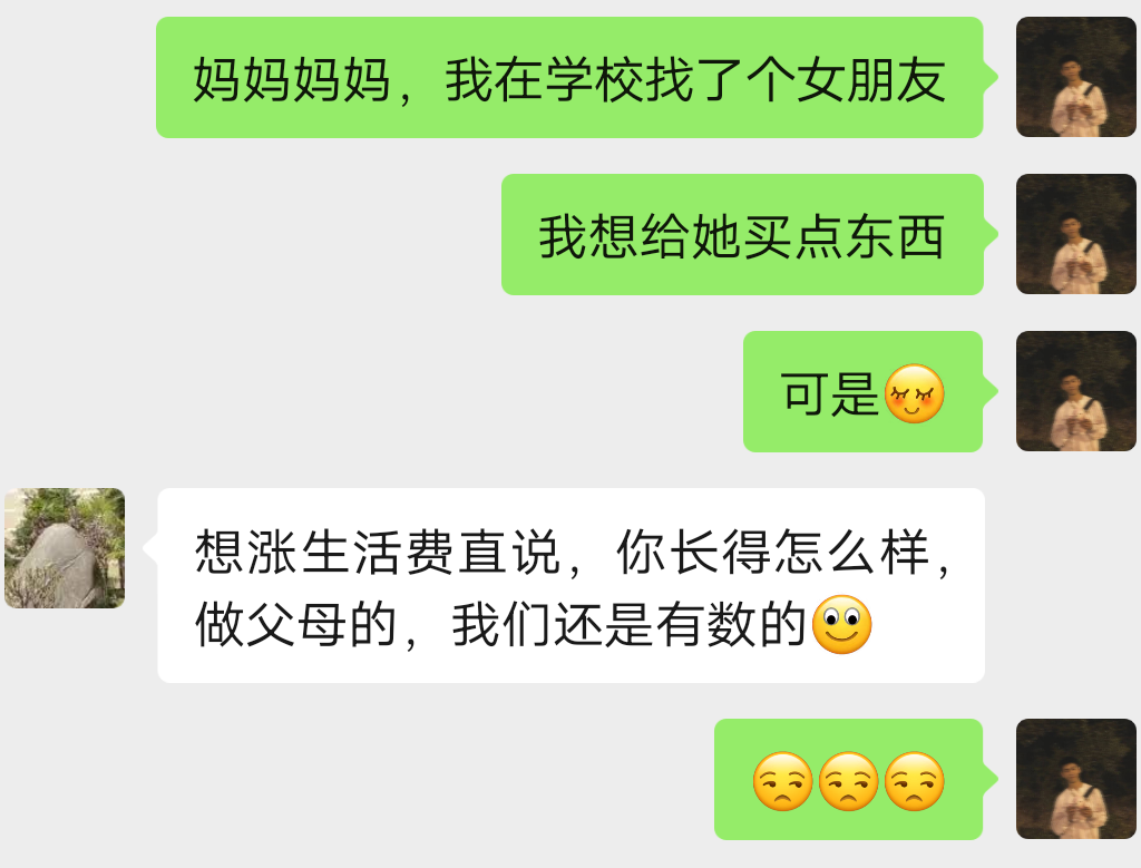 谈恋爱是一个花钱的命题,因此这似乎是提高生活成本的最好理由。但是,父母好像已经识破了这位同学的套路……