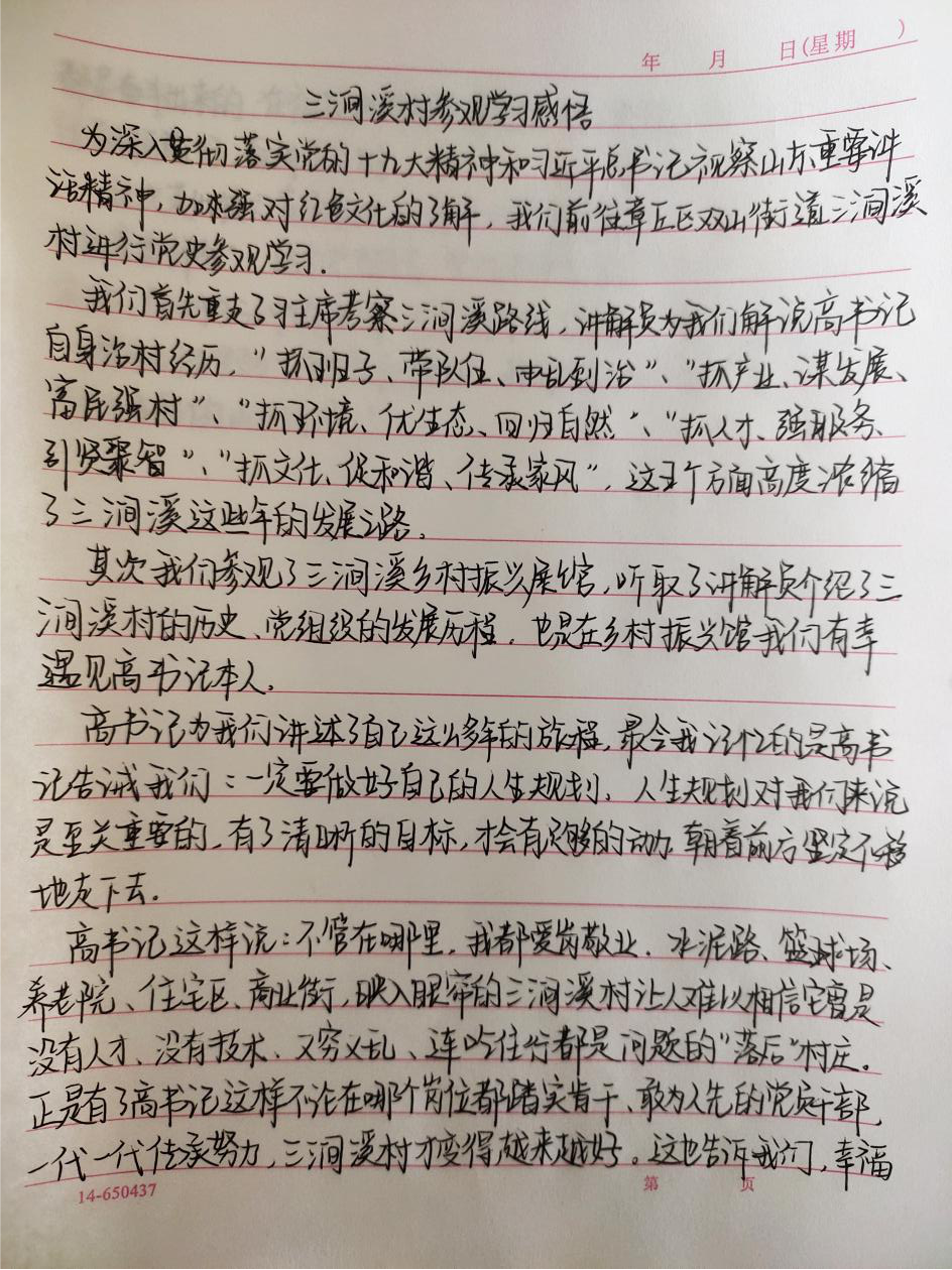 通过本次学习,全体同志深刻感受到了党史学习教育对于往后学习和工作的重要性,在学习归来途中,赵继辛主任在班车上分享了自己学习党史的深刻感悟,并布置了以后的工作任务以及重心,同学们纷纷表示要把今天所学到的全部以感悟的形式记录下来,把三涧溪村的好经验好做法真正运用到各自的工作和学习中去,发扬勇于担当,勇于创新的伟大精神,用奋斗谱写新时代青年的美丽人生。