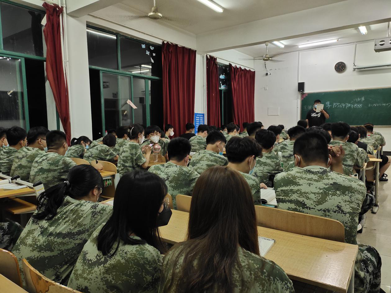 晚自习,新生认真地诵读国学经典
