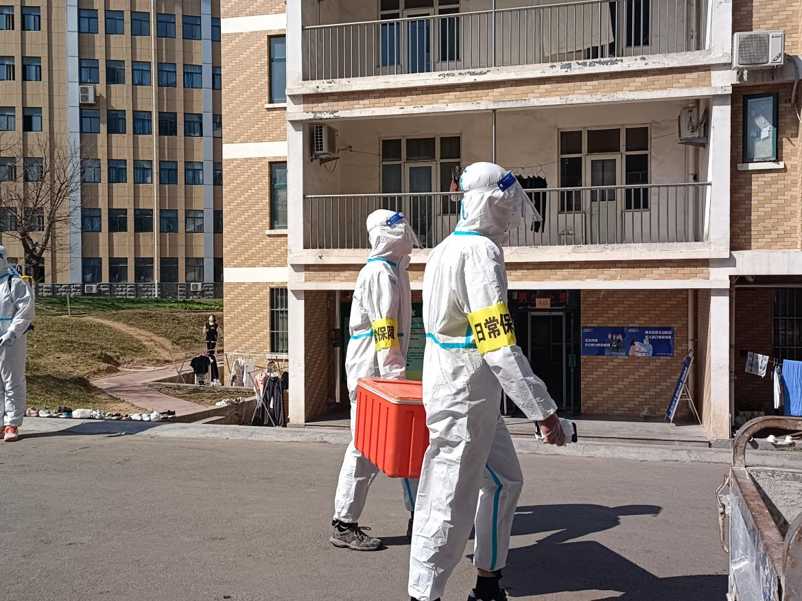 防控物资保障分队与生活保障分队则是在外负责防疫物资与每日饭菜的运送,疫情真正来临时,身着防护服的他们,要四处奔波,以保障同学们的日常所需。