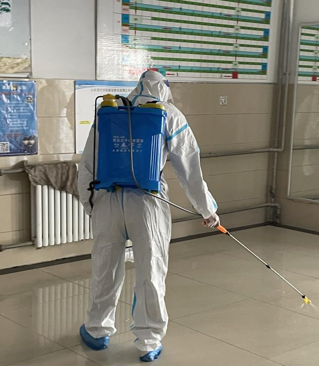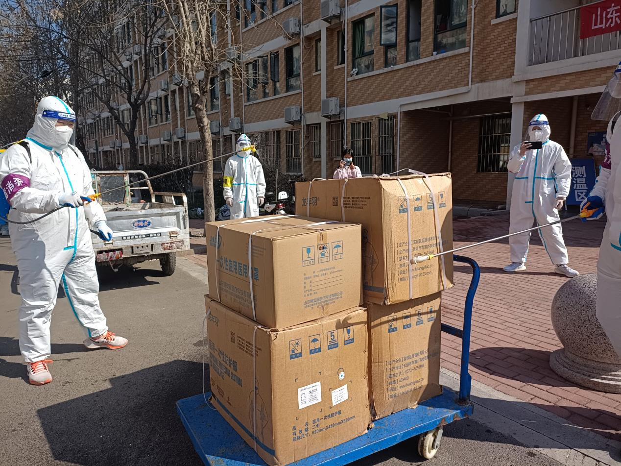 首先由消毒消杀保障分队对公寓外及各楼层进行全面消毒,无论是防疫物资还是日常保障物品,皆需经过他们的反复消毒消杀才会被送到大家手中。