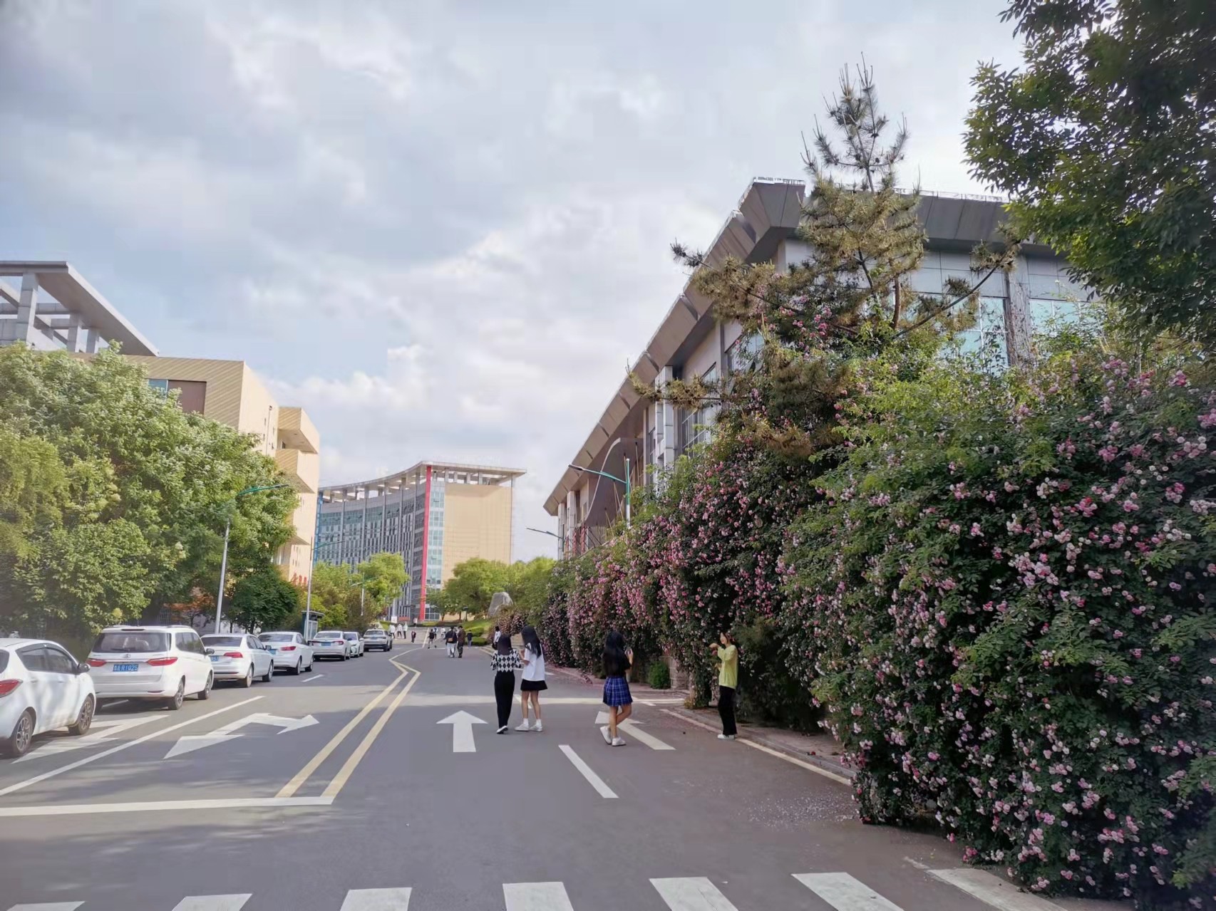 图书馆、餐厅、教学楼伫立在侧