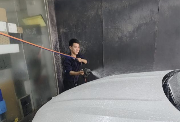 参观完企业内部,同学们积极投身到生产实践中去,体验洗车、为车做保养等工作。