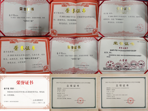 个人简介:李留现,男,汉族,共青团员,2020级本科交通运输班,在班里担任班长一职。2022年10月参加“第七届山东省大学生创客大赛”主持2项,参与3项,分别荣获二等奖、三等奖。2022年6月参加“山东省青少年课题研究”主持1项,参与1项分别立项,次年3月主持1项,参与3项分别立项。他被评为“校级优秀学生干部”“最美学习标兵”,荣获“省政府奖学金”发表知网、维普、龙源论文等。