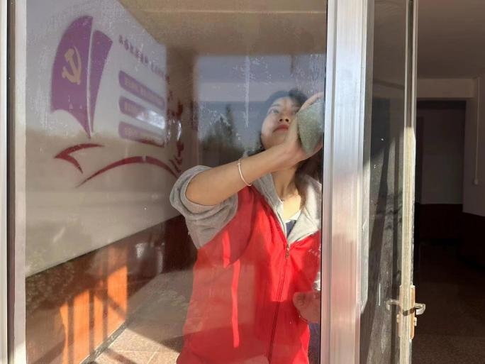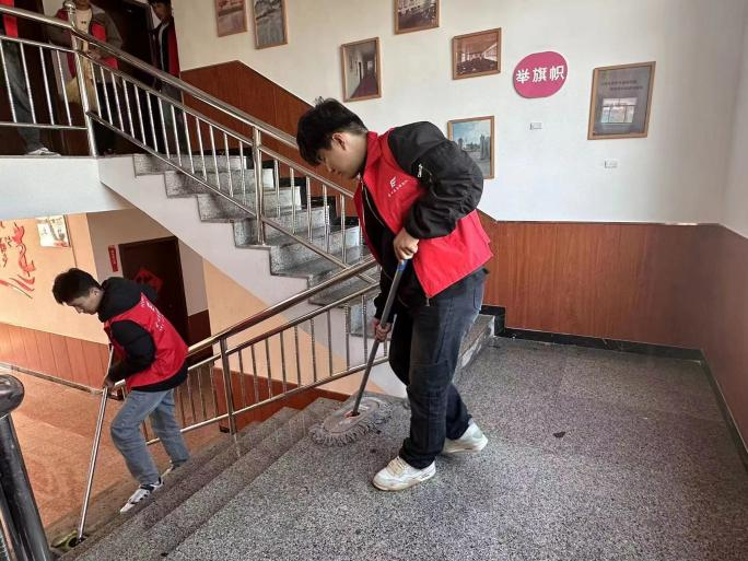 当天上午,志愿者参观完劳动研学地点后在鸡山党群服务中心,开展清扫活动,带队老师将志愿者们进行分组,分配相应的卫生工具。志愿者们耐心且认真地进行打扫,为鸡山村村民提供了干净整洁的卫生环境。