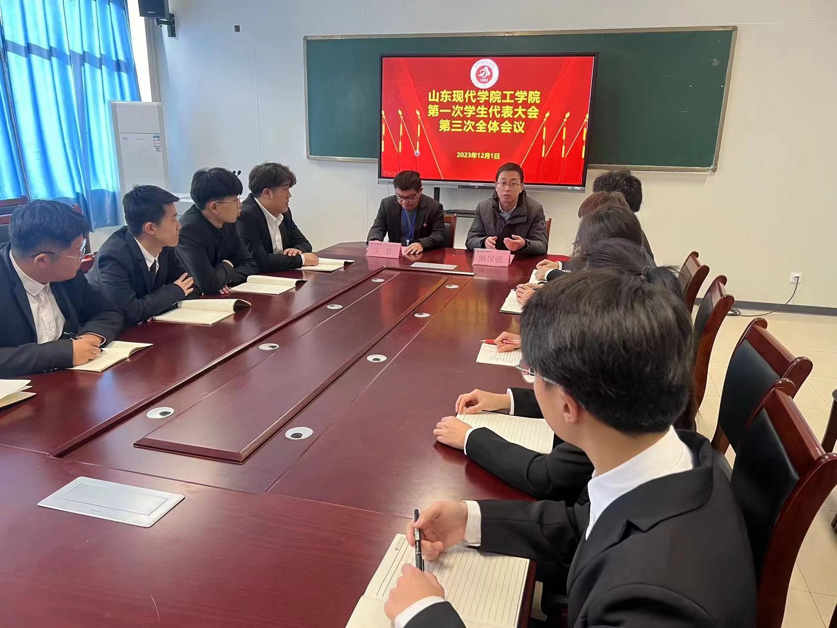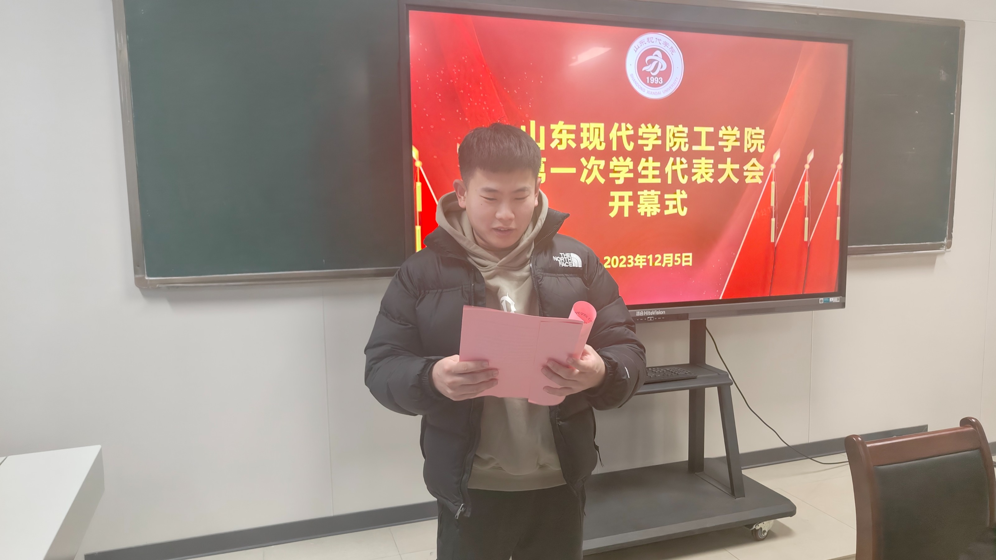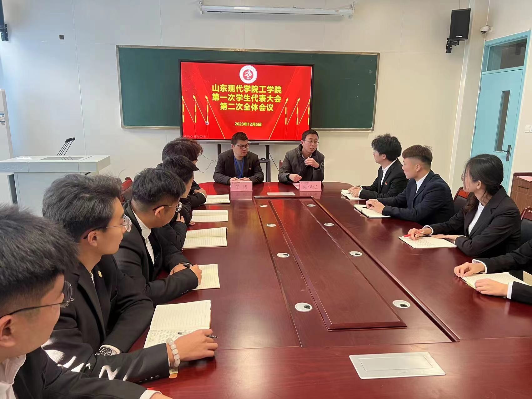 12月5日,山东现代学院工学院在知敬楼103会议室召开第一次学生代表大会。学管就业副院长阚保强,学管就业秘书王慧出席开幕式。