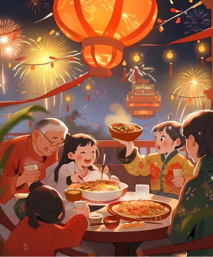 当烟花在夜空绽放,红红火火的灯笼点亮岁月的长廊