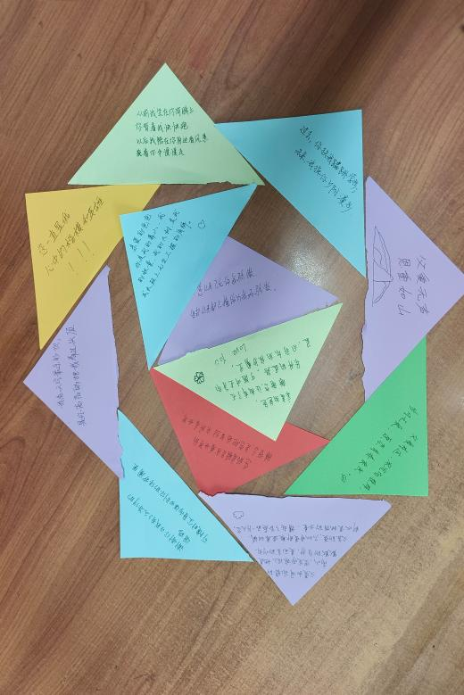两位同学分享后,活动进入高潮,同学们拿起便利签,写下心中给父亲的一句话,气氛热烈而温馨。
