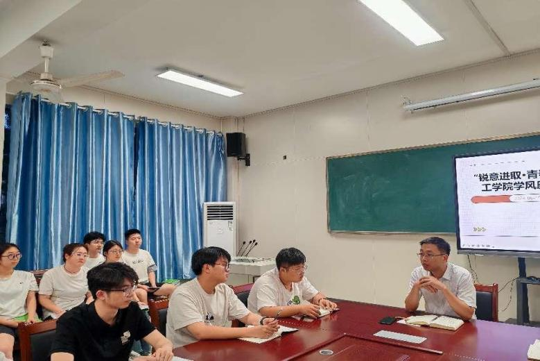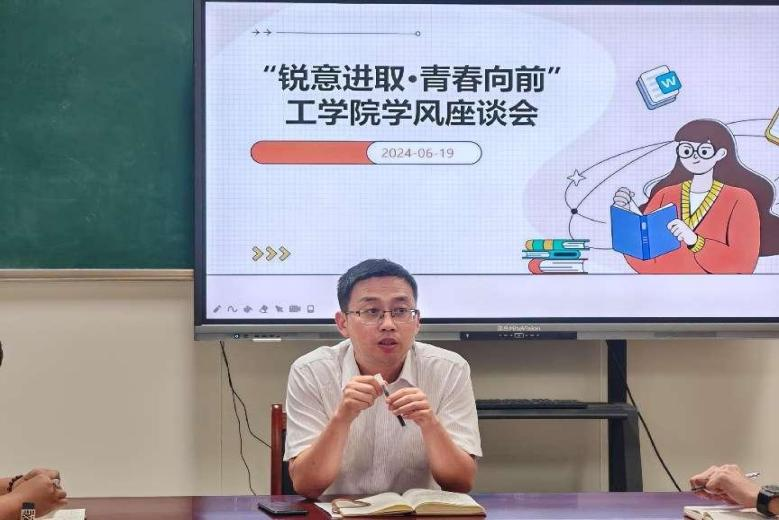 在座谈会上,学管就业副院长阚保强首先强调了优良学风对同学们的成长和工学院的发展的关键作用,鼓励同学们以积极向上的心态投入到学习和生活中。在此基础上,他分享了自己在教学过程中对于培养良好学风的经验和见解,为学生们提供了宝贵的建议。