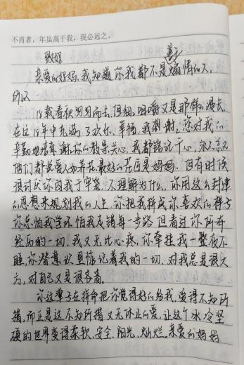 空闲之余,同学们纷纷用笔写下了给家长的一封信,表达了自己对父母的感恩之情。他们表示,自己会珍惜大学时光,用优异的成绩和成长回报父母的养育之恩。