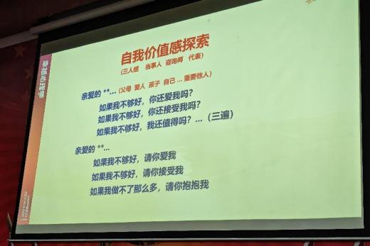 刘女士为同学们精心准备了别出心裁的游戏环节。工学院七连马含雪和工学院七连张博深率先参与,工学院七连马含雪扮演工学院七连张博深的妈妈,跟随刘女士一起深情地念道:“亲爱的妈妈如果我不够好,你还爱我吗?如果我不够好,你还接受我吗?如果我不够好,我还值得吗?亲爱的妈妈如果我不够好,请你爱我如我不够好,请你接受我如果我做不了那么多,请你抱抱我。”随后,两名同学互换位置,再次重复这动人的话语。在这个过程中,同学们仿佛置身于家庭的温暖氛围中,深刻地体会到了母爱的深沉与包容。