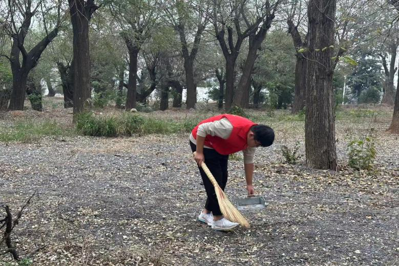 下午,阳光洒在校园的每一个角落,同学们身着志愿者服装,手持清扫工具和垃圾袋,分散到校园的各个角落,对校园内的各个区域进行全面清理。
