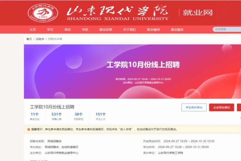 为了更好地满足毕业生的就业需求,为企业输送优秀人才,10月11日,山东现代学院工学院开展了线上招聘会。