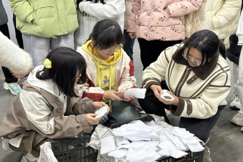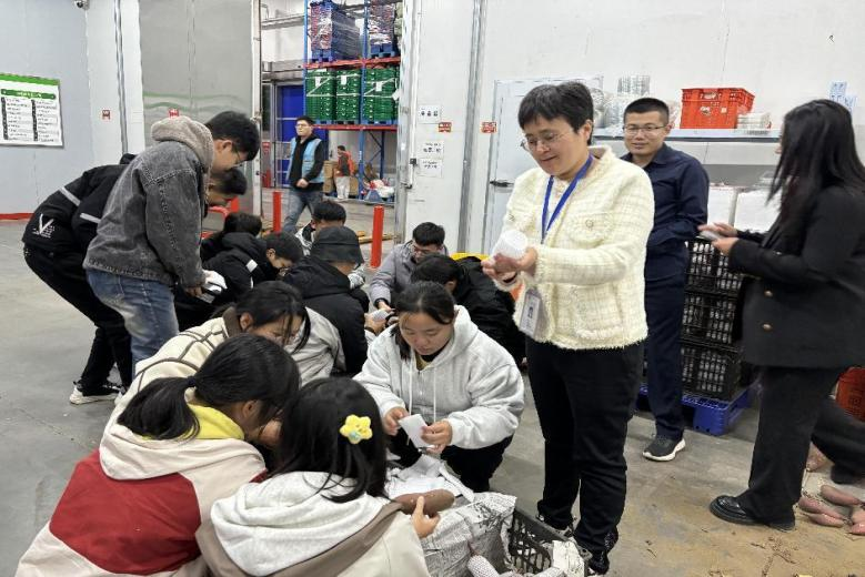 参观的过程中,负责人还特别为学生们安排了一项实践活动:让学生们亲手参与地瓜的包装工作。这不仅让学生们近距离了解了物流包装的流程,还通过实际操作深刻体会到了包装工作对商品保护及提升商品流通加工价值的重要性,从而增强了学生们的实践能力和对物流行业的认识。