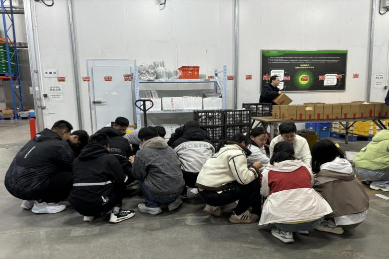 线上电商冷冻冷藏分拣区展示了冷链物流的先进技术和严格标准,使学生们对食品保鲜和运输有了更深的了解。