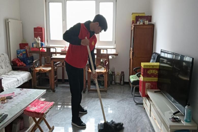 交流过后,志愿者们拿起清扫工具,细心地为老人们打扫房间卫生,他们擦拭桌椅、清扫地面。不仅如此,志愿者们还贴心地为老人们送上了精心准备的礼品,接过礼品的老人们脸上绽放出幸福的笑容。