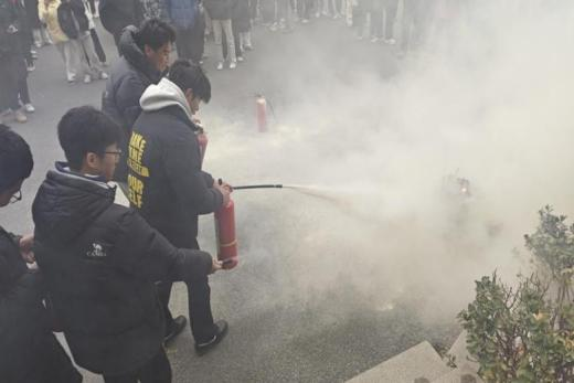 随后,安全处科长赵庆鸽详细讲解了灭火器的使用方法,让同学们对灭火器有了更直观、清晰的认识。他还组织同学们进行实际操作展示,同学们踊跃参与,进一步掌握灭火器的正确使用技能。