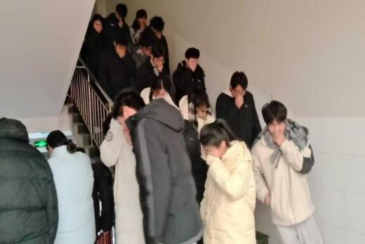 随着警报声响起,疏散活动有序展开。同学们迅速捂住口鼻、弯腰低姿,按预定路线快速、有序撤离至安全地带,展现出良好的应急反应素养。