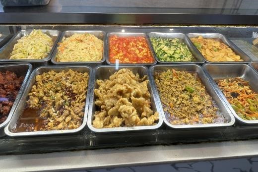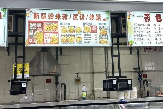 套餐类:一荤两素的盖饭,比如宫保鸡丁、鱼香肉丝等,菜量扎实;新疆炒米粉,鸡肉嫩、汤汁浓,吃得肚子饱饱的。
